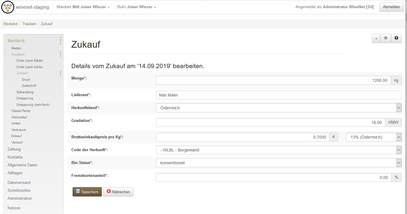 Zukauf ändern